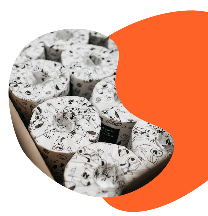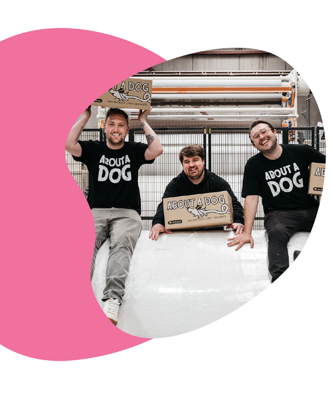 At About A Dog, we’re a small, Sydney-based bum roll producer. We’ve got a dedicated team of people who live and breathe toilet paper (not literally), and who care about making sure every-bum gets the best, softest choice of recycled loo rolls.
