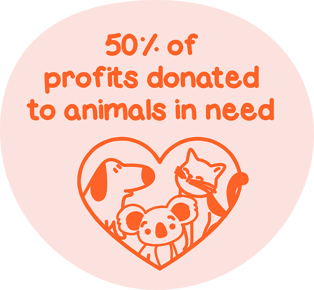 Every purchase goes towards helping animals in need by donating 50% of profits to animal welfare organisations.