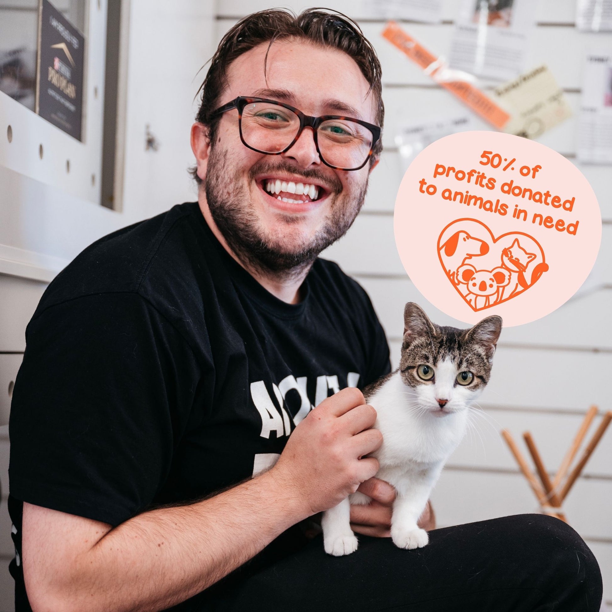 Every purchase goes towards helping animals in need by donating 50% of profits to animal welfare organisations.